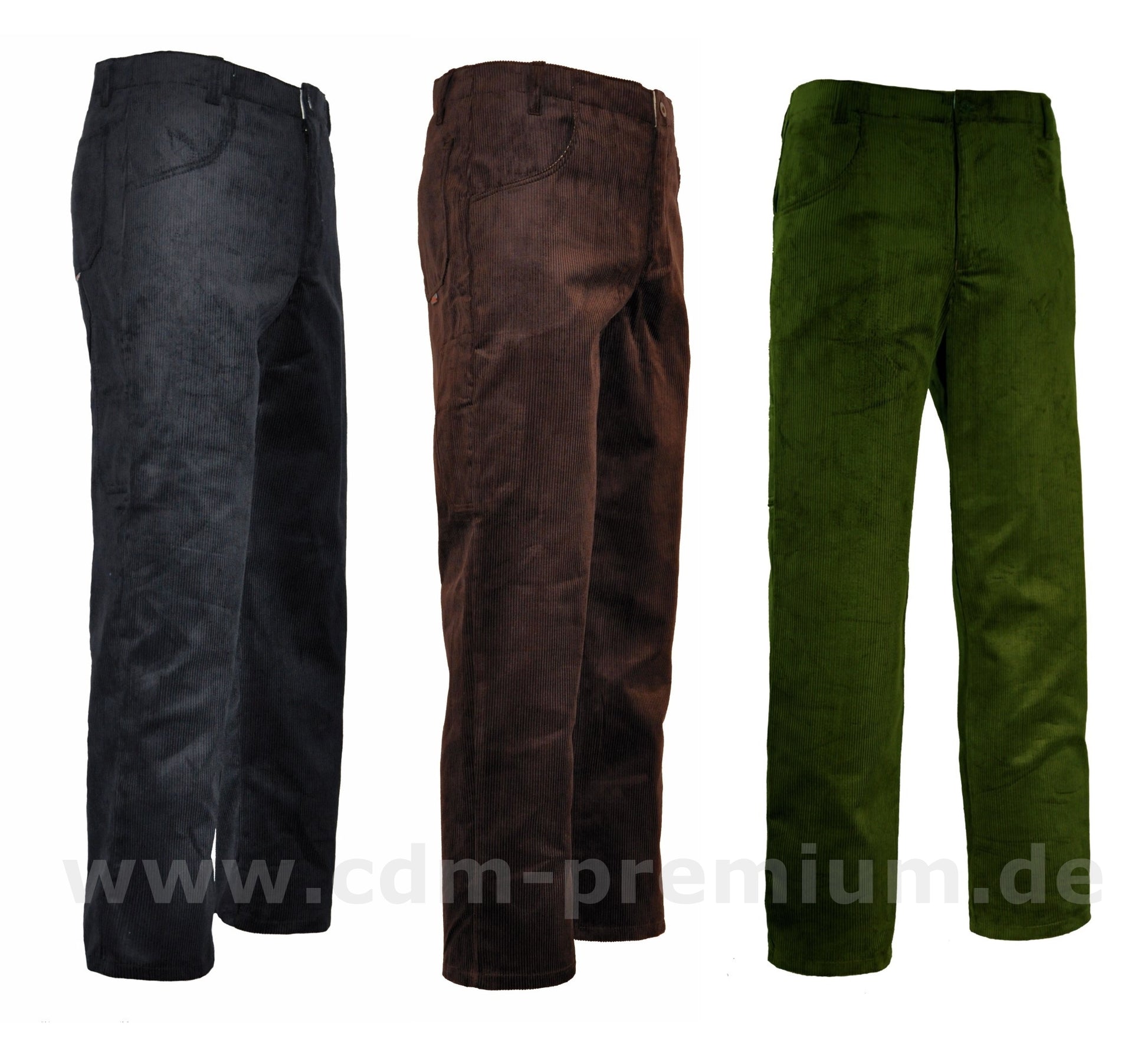 Bundhose aus Genaucord mit zwei eingesetzten Schubtaschen, einer rechts aufgesetzten Zollstocktasche und einer rechts aufgesetzten, verstärkte Gesäßtasche.